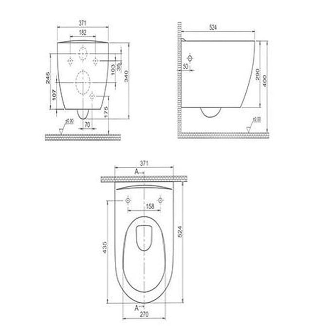 - Туркуаз Cerastyle City Rimless Клозет за вишенаменски користење: 019100