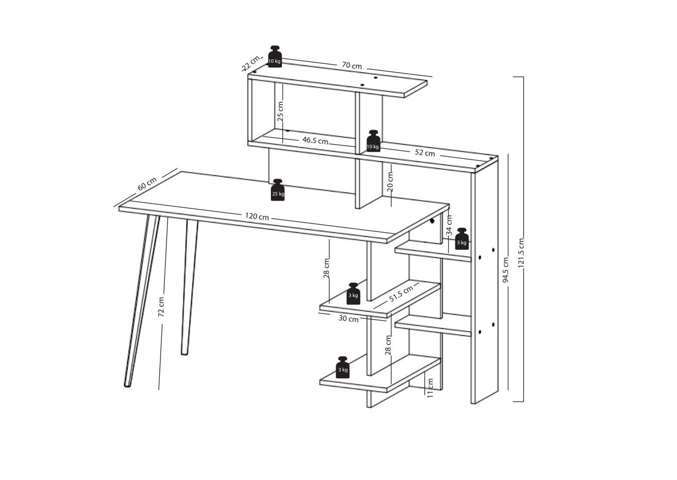 UZAY Работната Маса, со својот модерен дизајн и широк простор за складирање, ги прави работните простори стилски и функционални. Се истакнува со своите масивни дрвени нозе и течни линии. Благодарение на деловите кои се спојуваат без завртки и лесната монтажа, нуди долготрајна употреба.