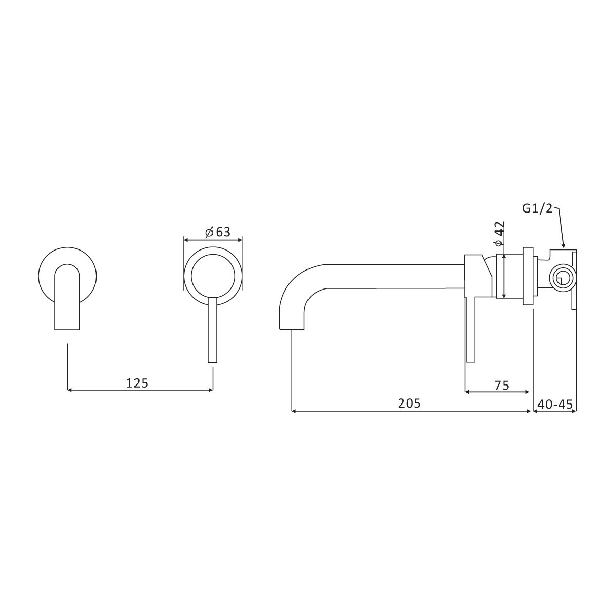 - Разстояние между изхода на водата и дръжката за включване/изключване: 125 мм