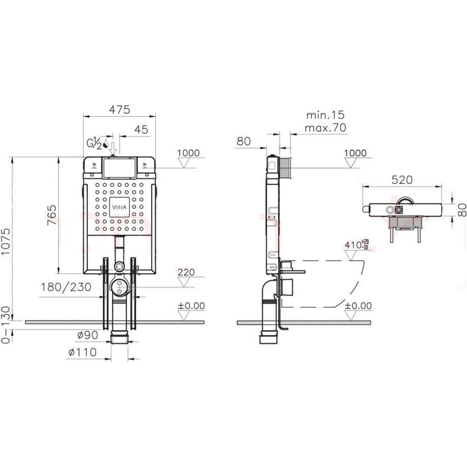- VitrA Вграден Резервоар 3-делен Сет: Панел за Контрола + Стоп Вентил 800-2027