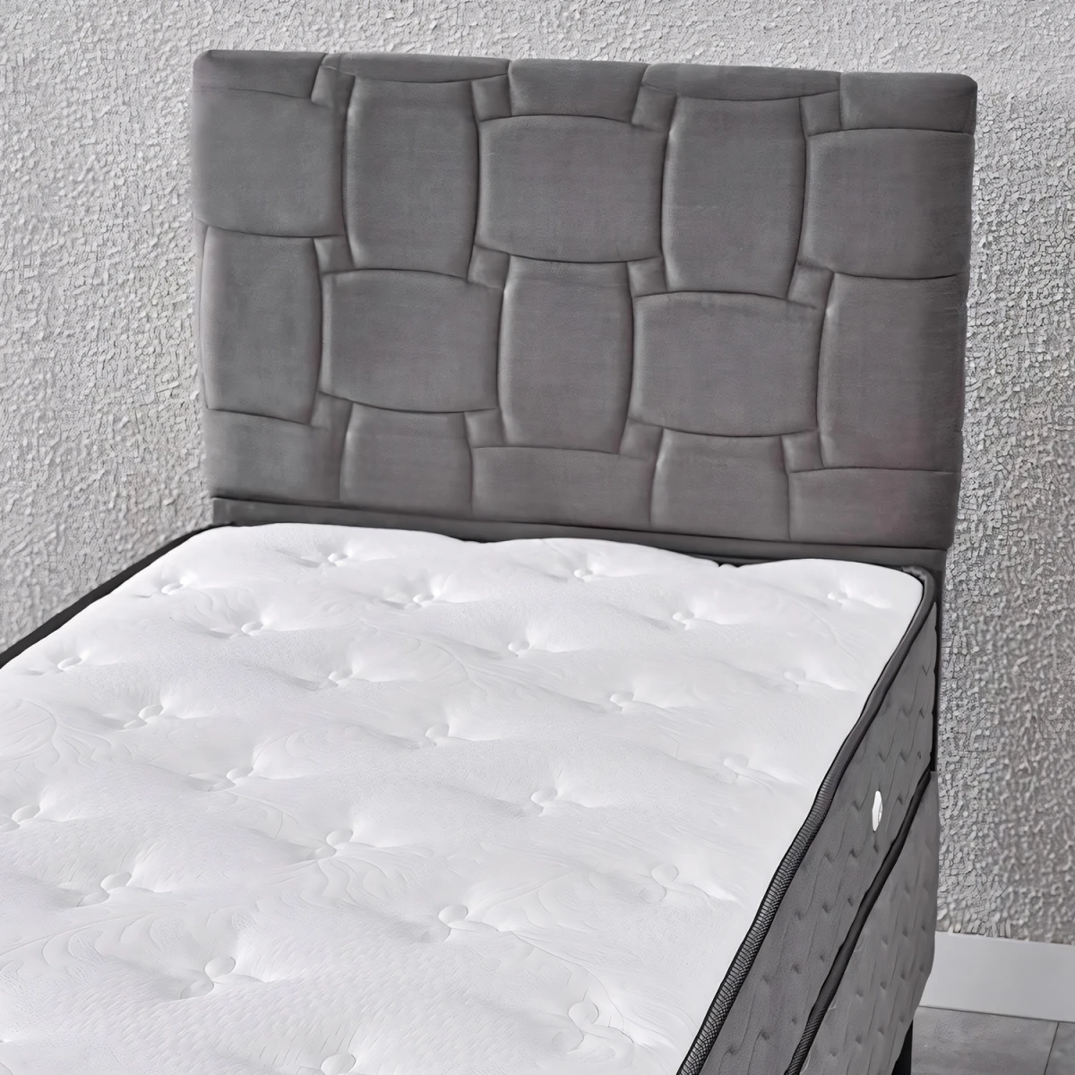 Визион Единечен легло , Наслов и Душек Сет; со својот модерен сив изглед, цврста структура и удобен дизајн, нуди идеално решение за спиење за младешки и гостински соби. Издржливата метална рамка на леглото, ергономскиот наслов и удобната структура на душекот обезбедуваат долгорочна употреба.