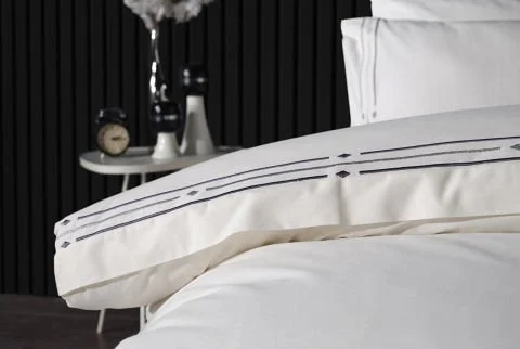 Модерен комплет постелнина King Size во индиго нијанса со елегантни везени детали.