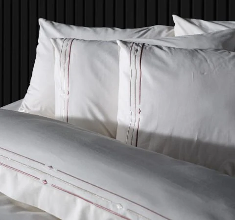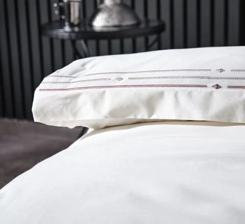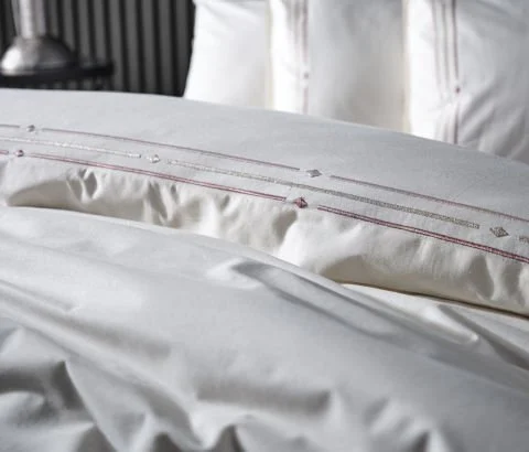 Елегантен комплет за двојно постелнина со детали од вез, мека текстура и природна беж нијанса.