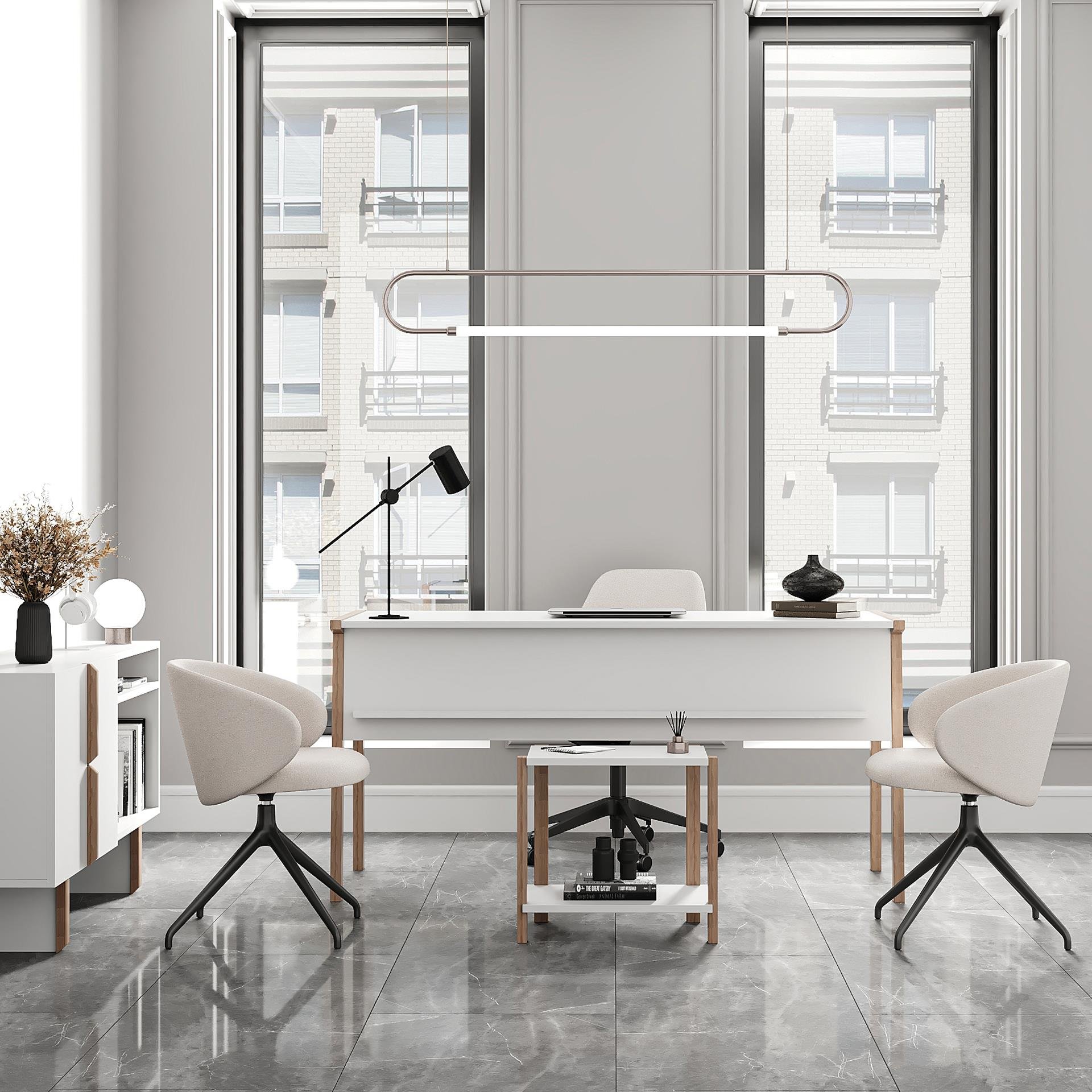 Канцеларискиот мебел е главен елемент за ефикасно поминување на времето во вашата работна средина. При изборот на канцелариски мебел, треба да изберете производи со цврст и елегантен дизајн во кои ќе се чувствувате удобно и ќе можете ефективно да ја организирате вашата средина. Вашиот канцелариски мебел е важен не само за вас, туку и за имиџот што сакате да го создадете пред вашите клиенти и гости. Затоа, треба да создадете балансиран декор помеѓу елеганција и функционалност. За освежувачки и елегантни средини, можете да ги разгледате нашите канцелариски мебел, работни маси, шкафови и полици за книги. Бидејќи боите и дезените на сите наши производи се избрани од иста палета, можете да изберете кој било модел од нашите различни производи и да создадете впечатливи декоративни комплети.