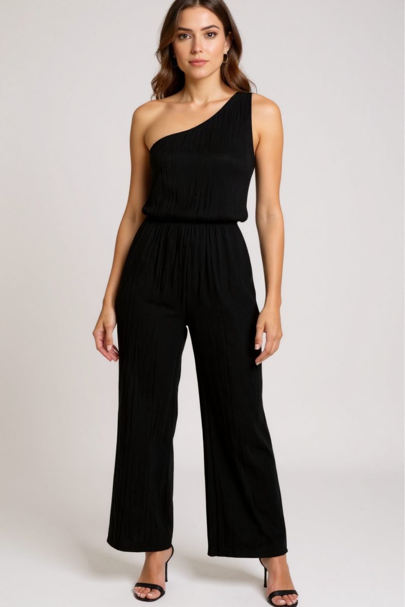 Женска Црна Еднорамна Стилска Блуза & Широки Панталони Комплет – Модерен, Удобен и Соодветен за Секојдневни Комбинации е идеален избор за жени кои сакаат да уживаат во стилот и удобноста истовремено. Со својот модерен и елегантен дизајн, овој комплет е незаменлив дел од вашата гардероба, погоден за секојдневни и вечерни комбинации.
