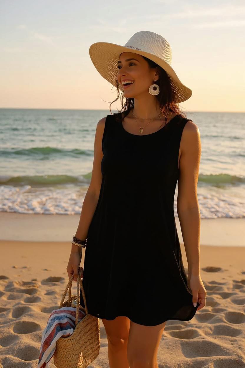 Женска црна плажна фустан со детали на грбот е совршен за летните денови на плажа. Овој фустан комбинира стил и удобност, идеален за секоја прилика. Направен од еколошки материјали, тој е пријателски настроен кон животната средина и ви овозможува да изгледате прекрасно.