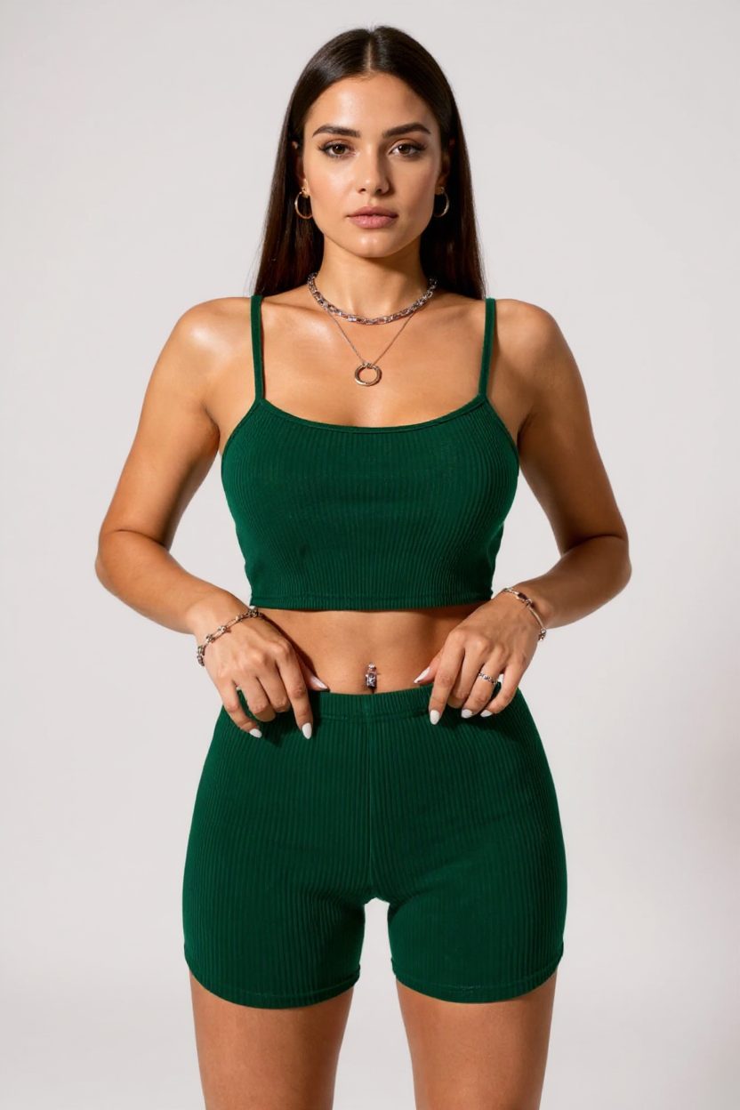 Женска зелена шорти и кашкорсе ноќен сет е совршен избор за секоја жена која сака да изгледа стилски и да се чувствува удобно. Овој сет е идеален за дневни комбинации и нуди максимален комфор.