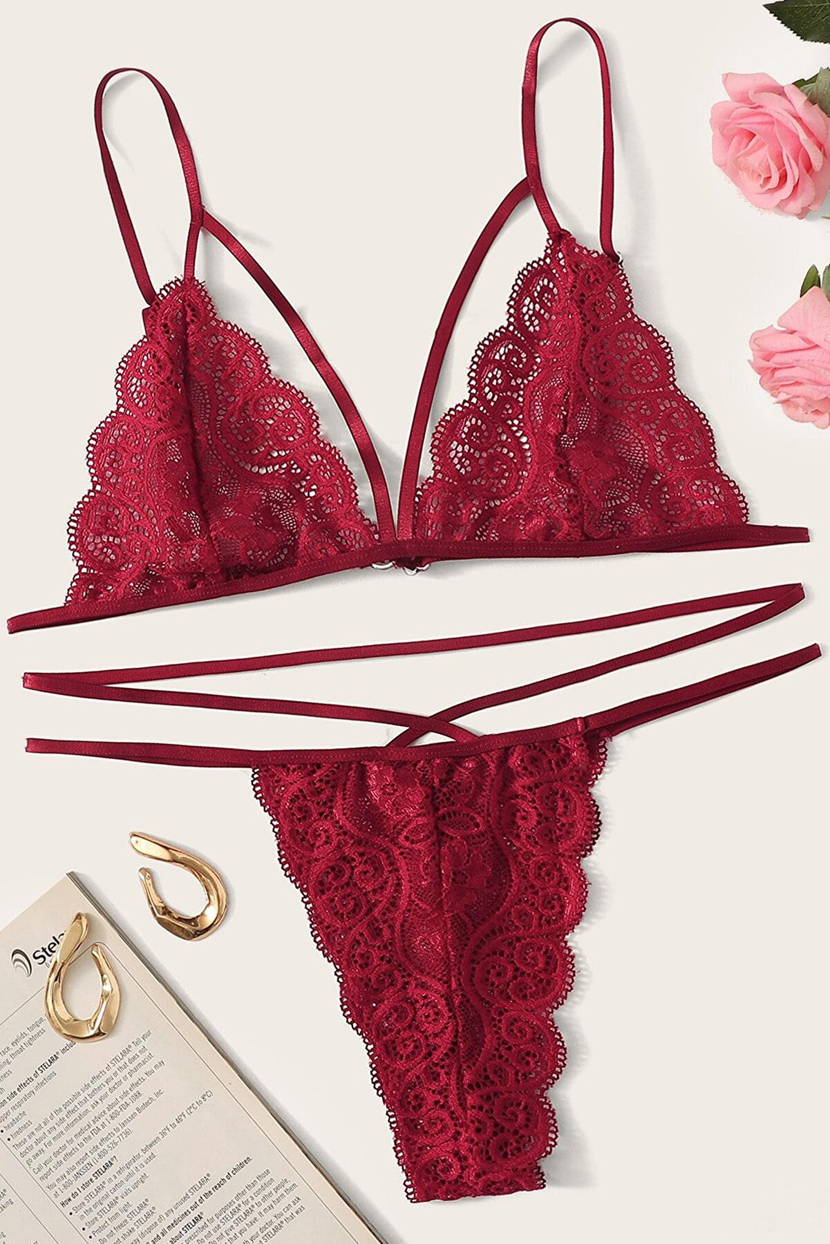 Женски бордо дантелест сет на градник и гаќи е производ кој се истакнува со својот модерен дизајн и удобен крој. Совршен е за секојдневна употреба, но и за посебни прилики.