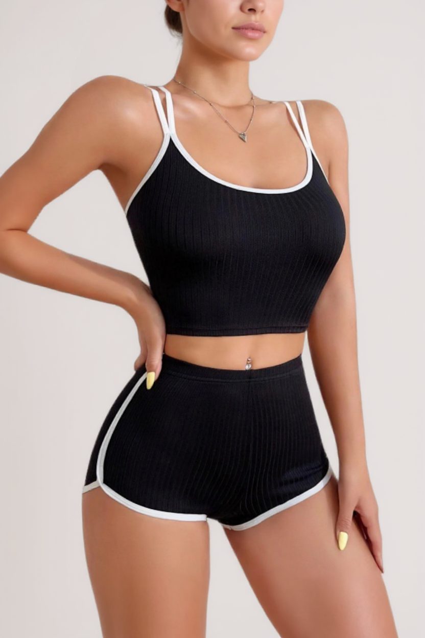 Женски црно-бел крос ластик детали кашкорсе шорти за спиење сет – Модерен, удобен и погоден за секојдневни комбинации е идеален избор за секоја жена која сака да се чувствува удобно и стилски. Овој сет е направен од квалитетни материјали и е дизајниран да обезбеди максимален комфор во текот на денот.