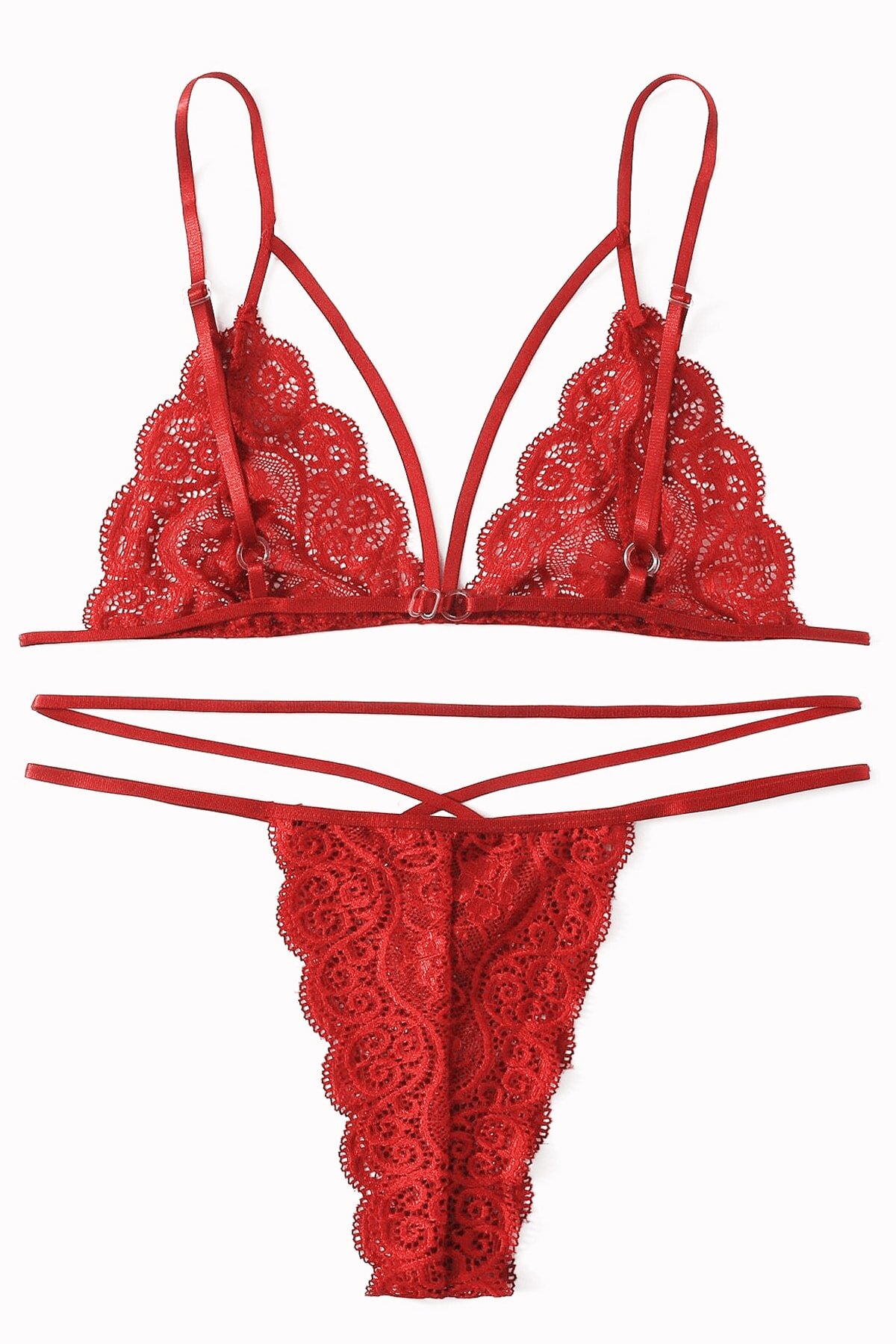 Женски Црвен Чипка Сутен и Панталони Комплет