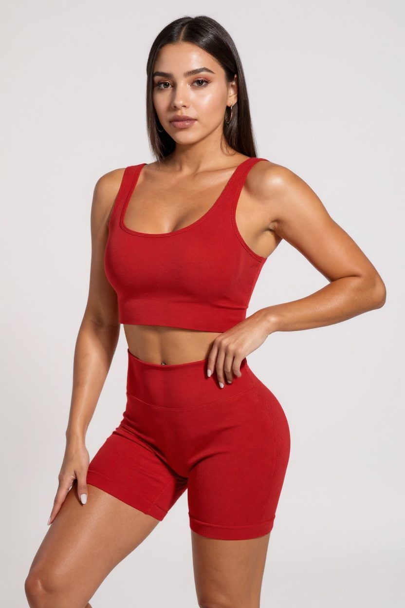 Женски црвен дебел со широки ракави високи бикини сет за спиење е идеален избор за вашите удобни моменти дома. Овој сет е направен од лесен и дебел какашорс материјал, што го прави совршен за носење во секојдневието или за време на спорт.